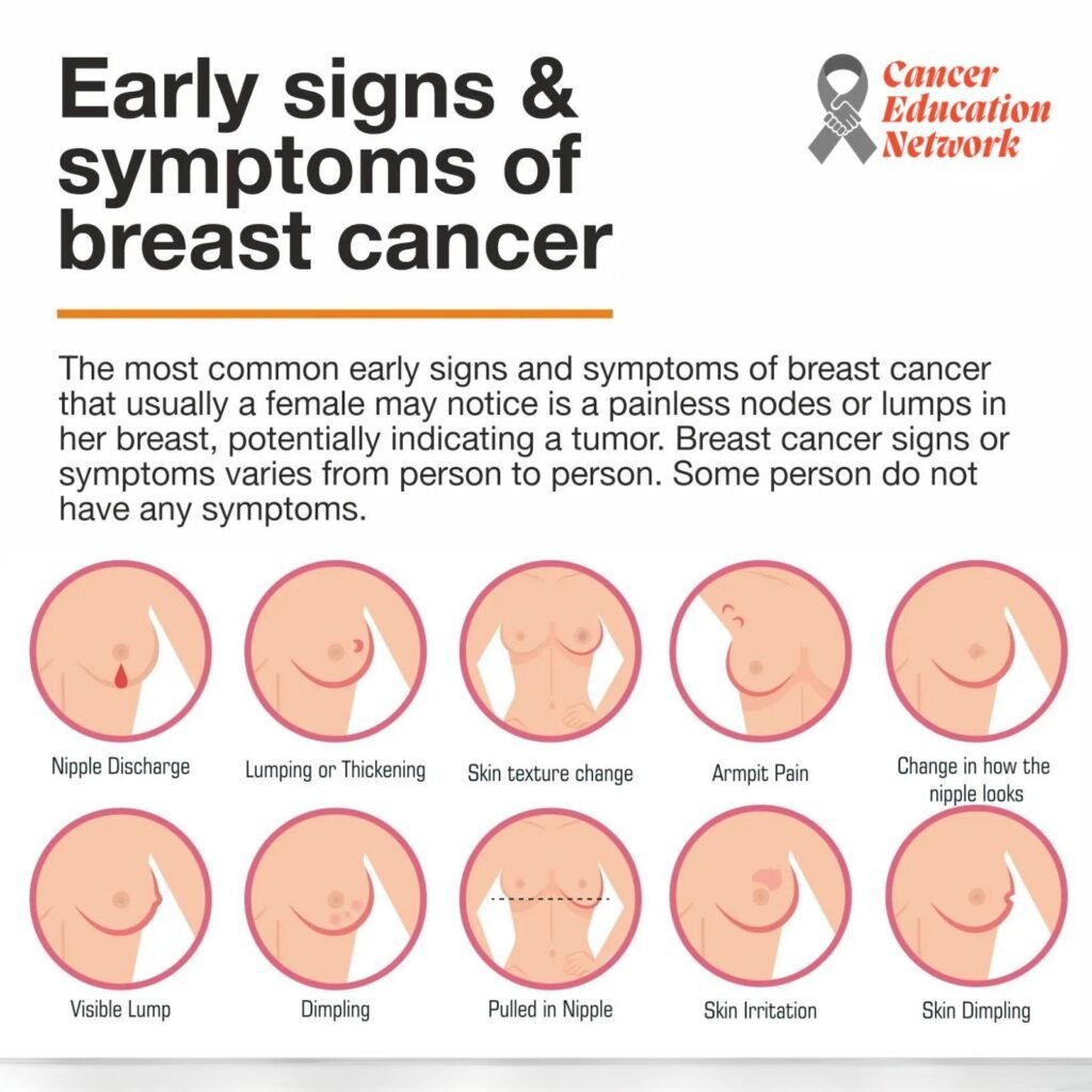 Early breast cancer may not cause any symptoms, but as it progresses, these changes might appear: